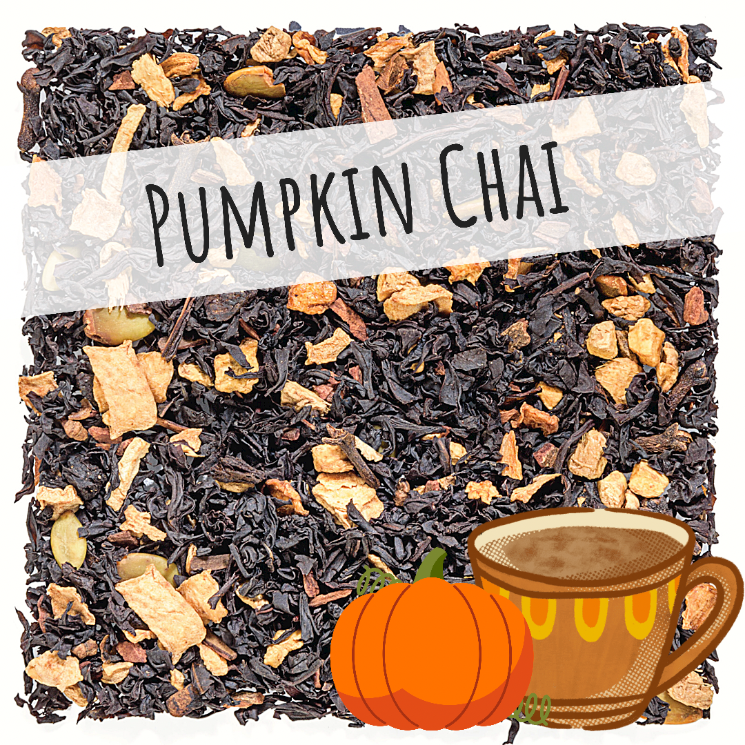 Ingredients: Black Tea, Cinnamon Bits, Ginger, Pumpkin Bits, Pumpkin Seeds, Chicory Root, Cardamom, Natural Flavoring & Cloves