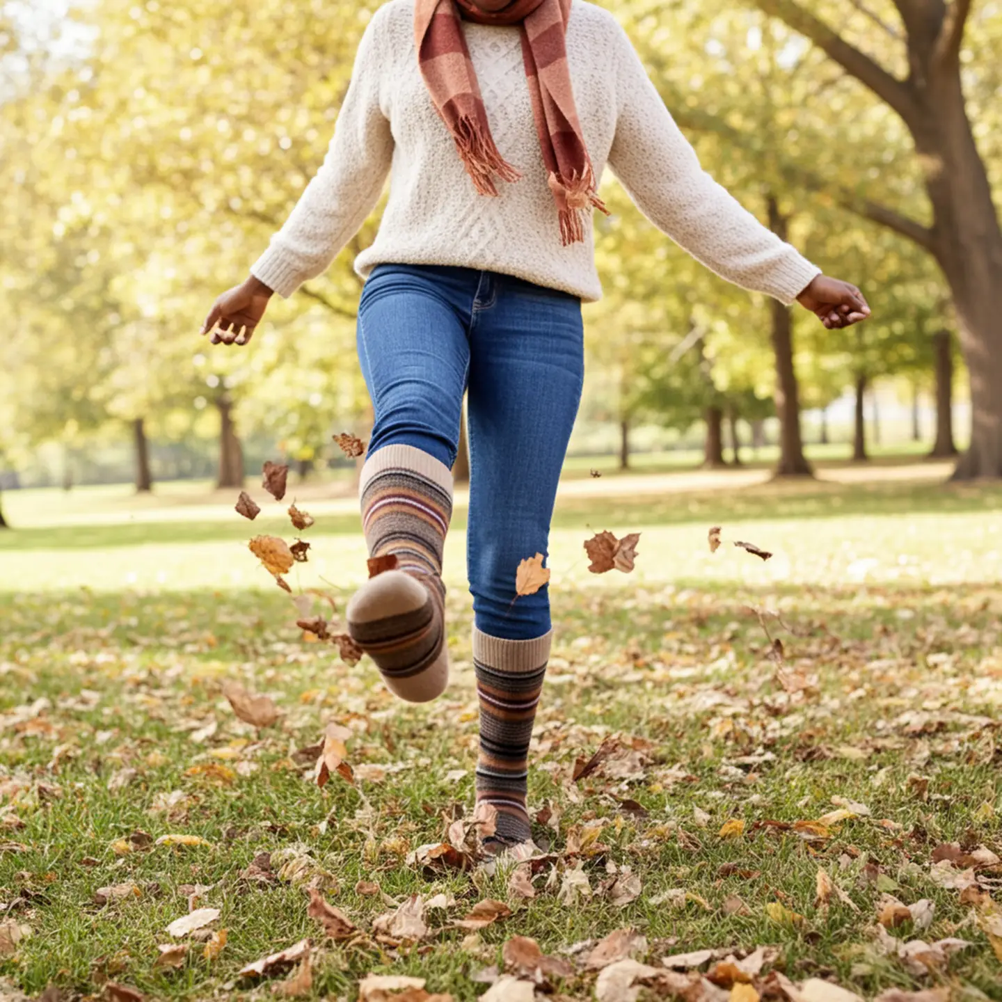 Grounded in rich camel, bark, and merlot stripes, the Tierra Alpaca Socks channel autumn landscapes and winter cabins. The perfect cold-weather essential for everyday wear or rustic holiday gifting