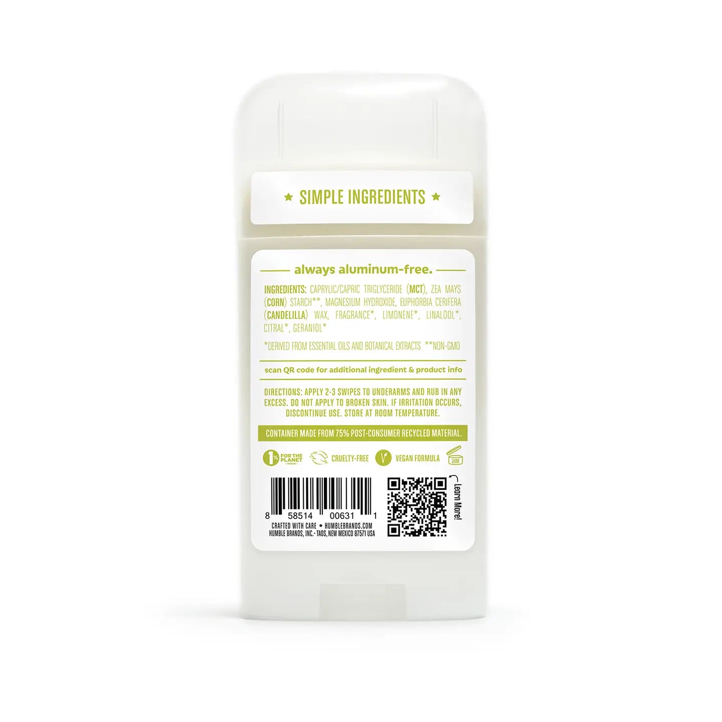 A vegan friendly and baking-soda free formula, this deodorant has no aluminum, alcohol, dyes, parabens, sulfates or artificial fragrance. Certified Cruelty-Free by Leaping Bunny and a 1% for the Planet product that gives back with every purchase. Packaged in 75% post consumer recycled plastic.