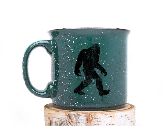 This ceramic coffee mug is great for any sasquatch enthusiast or for those with a sense of adventure or who love the pacific northwest outdoors! A rustic bigfoot silhouette walks across the front side of this mug. The screen print is lightly distressed, giving the big foot print that warm rustic look and feel.