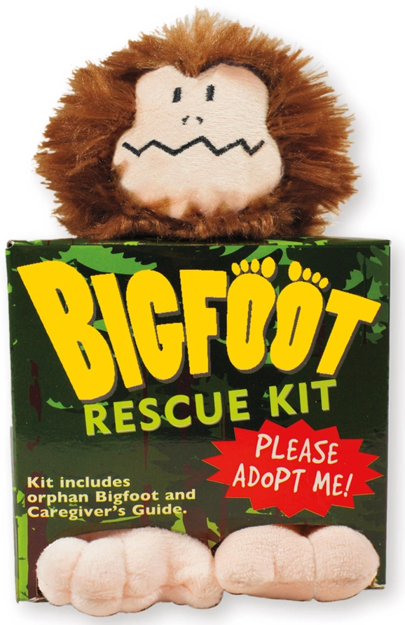 Who can resist this little Bigfoot from the Great Northwest? This cute critter needs a home, hugs, and socks! By adopting this young Sasquatch, you pledge to act as its guardian, mentor, and friend. Rescue Kit includes lovable plush Bigfoot and 16-page ''Caregiver's Guide'' with adoption certificate, informative text, and nurturing advice. A great gift for aficionados of all things adorable. Feel the love!