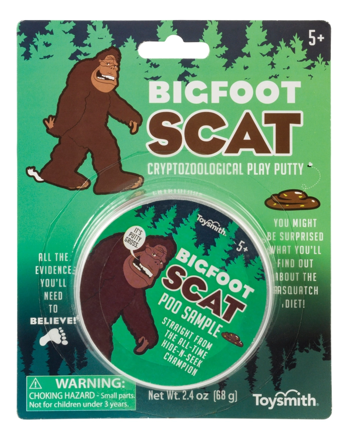 Secretive and shy, the mysterious Bigfoot leaves a little behind from his behind. The proof is in the poo! 2.4 oz. of brown putty slime. 5yr+