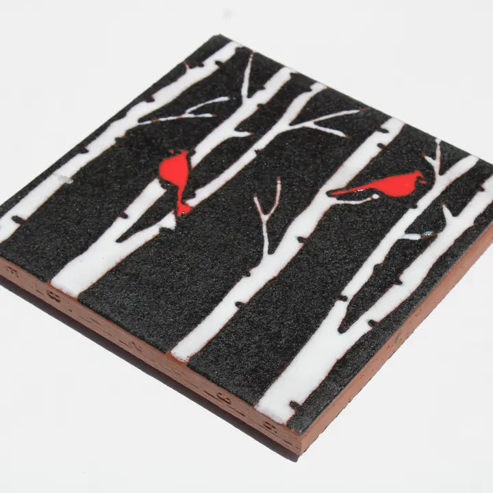 Tile - Birch Tree with Cardinals
