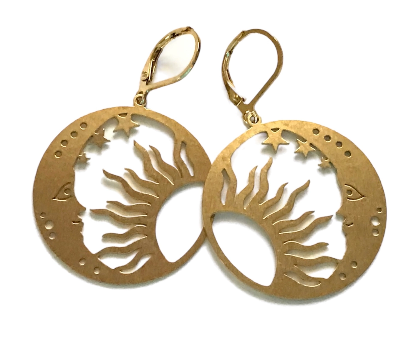 Brass Large Sun & Moon Earrings