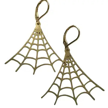 Brass Spiderweb Earrings hang 1 3/4” off of 24k gold plated stainless steel ear wires. Hypoallergenic.