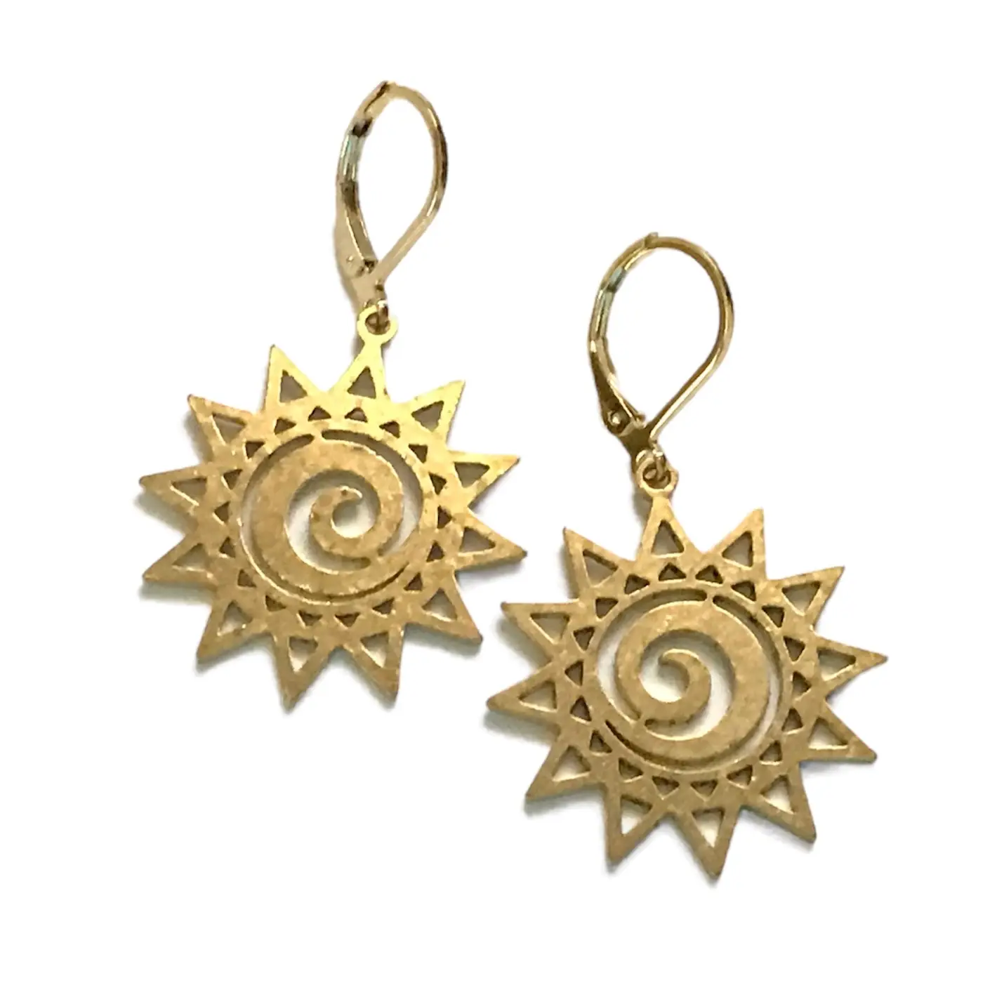 These brass Sunbeam Earrings will be a favorite. They wear easily with a pair of jeans and T-shirt or your favorite black dress.