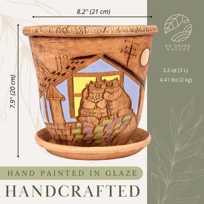 Cats Ceramic Planter & Saucer