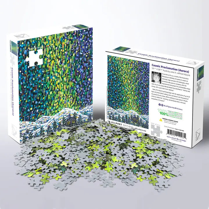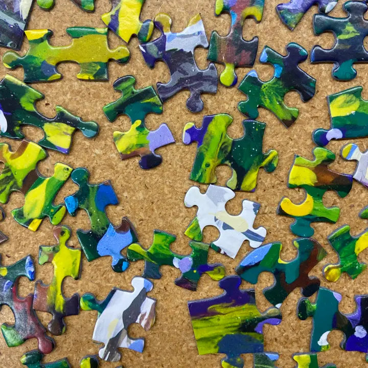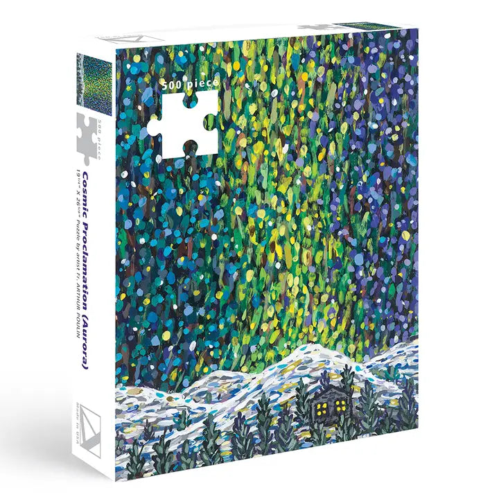 Watch a beautiful wintertime mountain scene emerge, piece by piece! Our 500-piece puzzles are made from 100% recycled backer board and box and are made in the USA. Unique puzzle piece shapes and high-quality construction. Puzzle Measures 19 1/4 x 26 5/8 inches