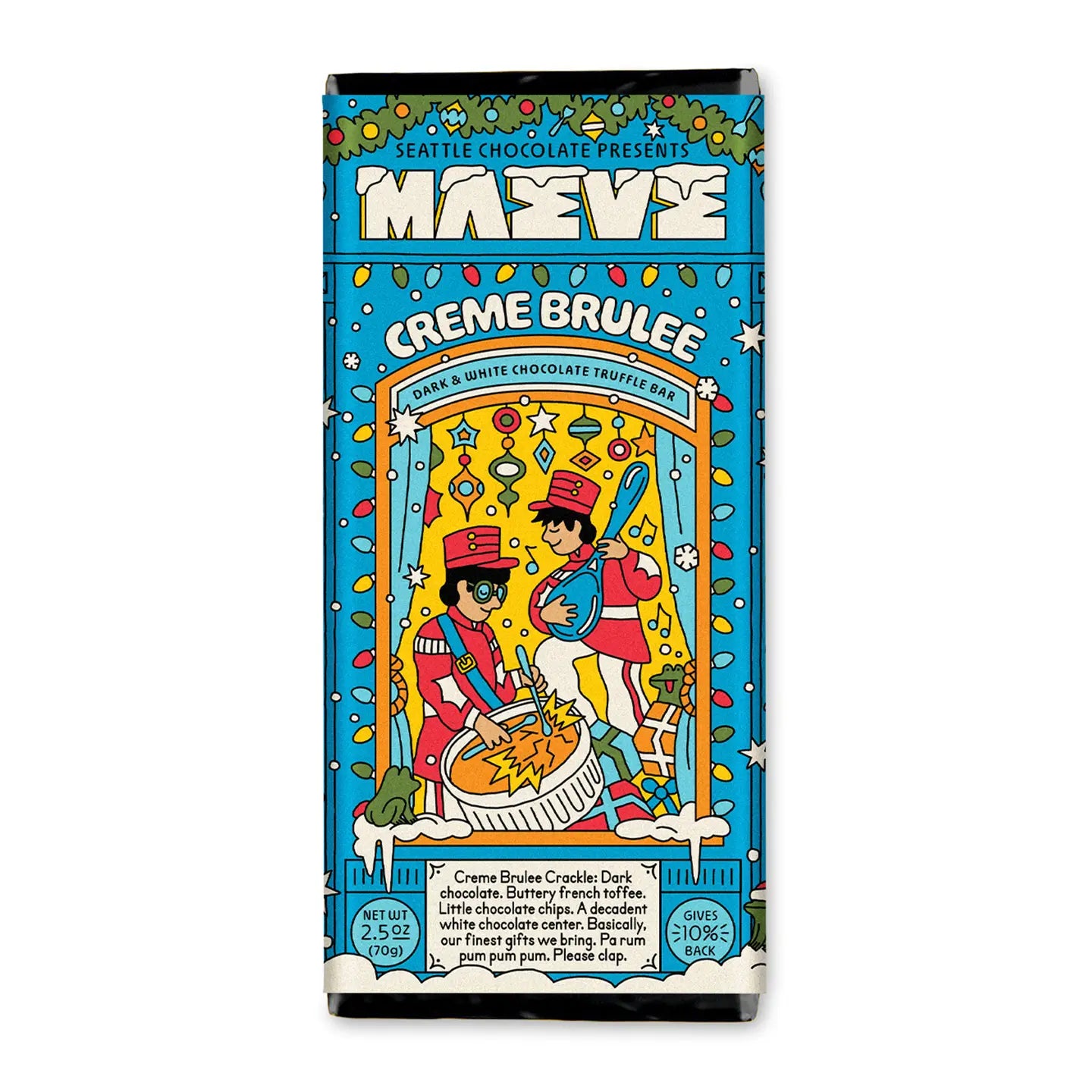Inspired by the French classic dessert, this crowd pleaser is back with its dark chocolate shell, buttery french toffee, and little chocolate chips in a creamy white chocolate center. (2.5oz)