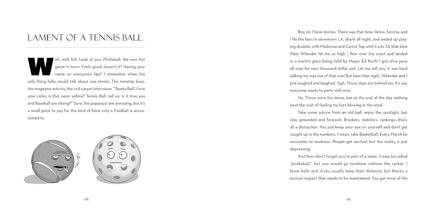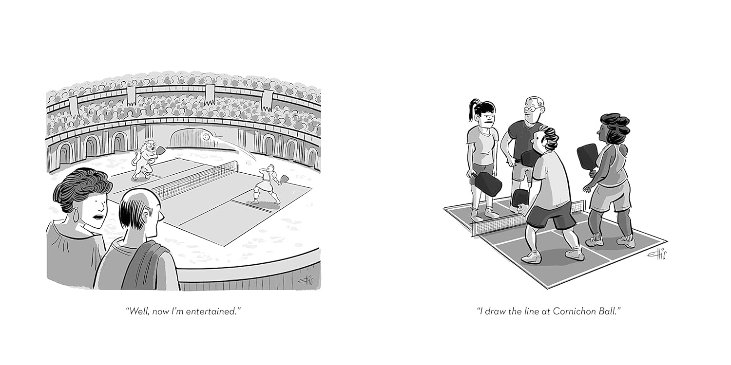 Maybe you’ve heard the word “pickleball,” but you want to know what all the fun is about. Or you’re already an enthusiastic fan and want to celebrate the ins, the outs, the dillballs, the chops, and the falafels of it all. Enter Ellis Rosen, resident cartoonist for In Pickleball magazine and frequent contributor to The New Yorker. Rosen is a master of communicating this fantastic sport’s primary characteristics with subtlety and wit. Alongside background on the game—its founding in 1995, the mysterious origins of its name, and more—Ellis will relate some tips for improving your on-court moves, a lovingly humorous glossary of pickleball terms, and some cheeky nods at pickleball culture. A celebration of community in addition to a what’s-what and how-to guide to this unique and amazing sport, you’ll be hard-pressed to find a better gift for the pickleball lover in your life.