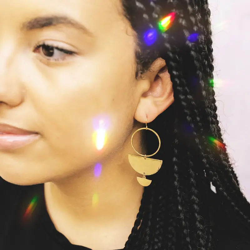 -Double Half Moon Earrings are made of brass with gold plated earwires, lead and nickel free. They Measure approx 2.25" x 1".