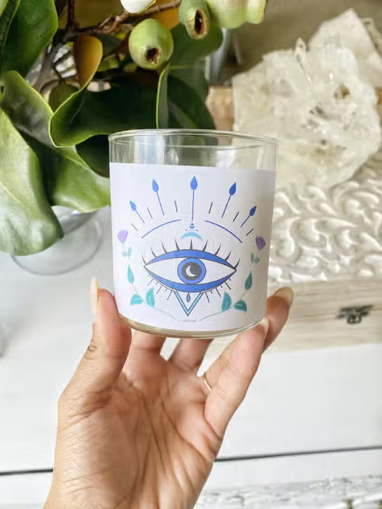 Protection and Growth candle. Evil eye glass charm can later be used for a backlash or keychain.