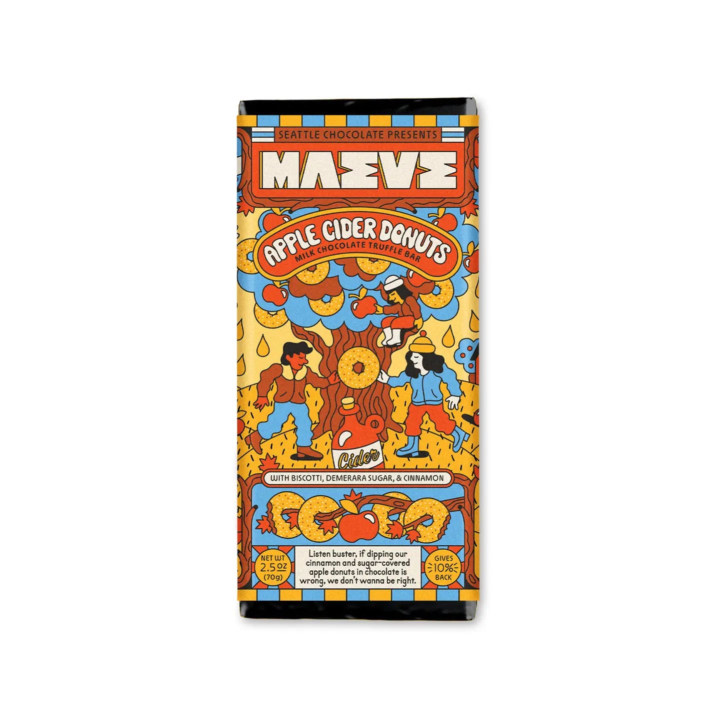 Flavor: Milk chocolate spiced with cinnamon, crunchy sugar bits, and biscotti. (2.5oz) When you pick Maeve, you’re choosing a sustainably sourced, eco-conscious, woman-owned brand — and you’re also choosing FUN.