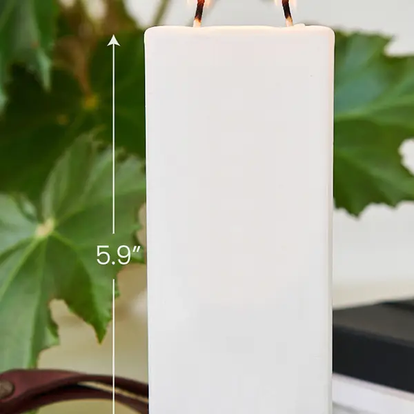 Hand-painted in Lithuania, these candles stand out in their simplicity. The flatter design is a unique approach to candles that have a minimal and eye-catching feel. The twin wicks burn evenly and self-extinguish as they near the steel base, without any dripping wax or smoke.