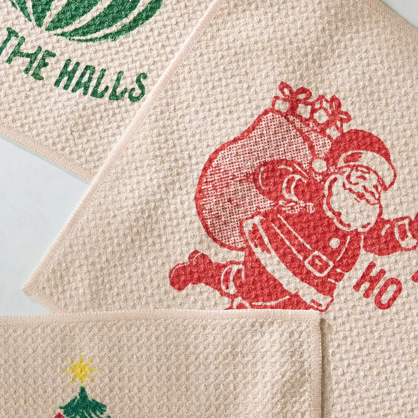 Dishcloth Set - 3 pack | 10" x 10" | Made from recycled polyester | Weight: 320 g | Single-sided print | Hang loop | Waffle weave construction | Quick-drying | Superior cleaning | Next-level absorbency