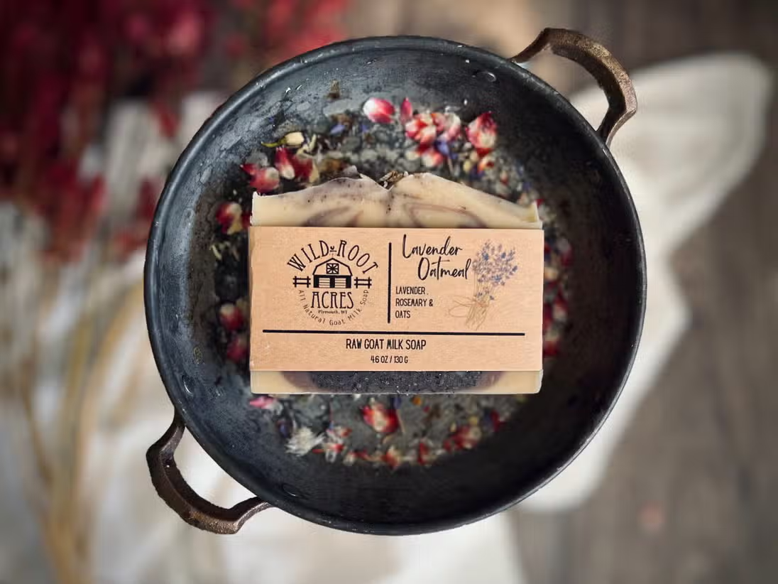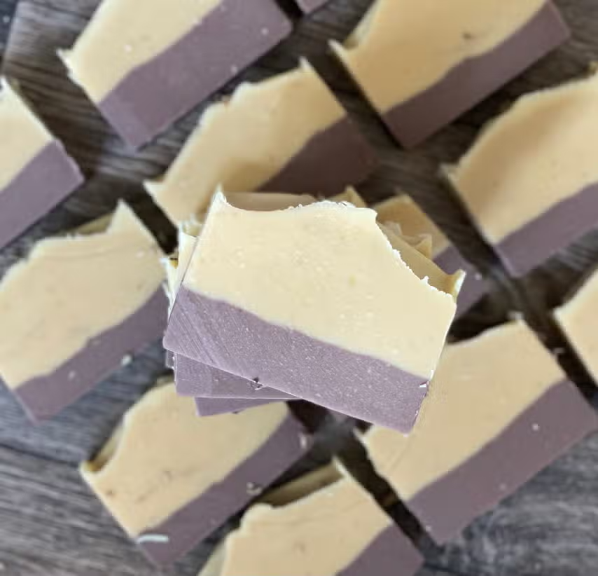 ingredients- extra virgin olive oil, local lard , coconut oil, raw goat milk sodium hydroxide, fair trade Shea butter,avocado, castor oil,essential oils, clay and colloidal oatmeal