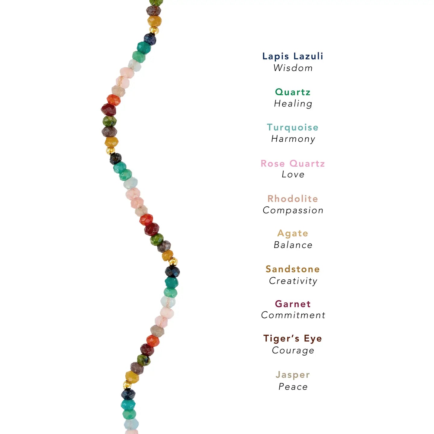 Featured Stones: Jasper, Tiger's Eye, Unakite, Garnet, Carnelian, Quartz, Jade, Rhodolite, Rose Quartz, Amazonite, Chrysocolla, Lapis Lazuli
