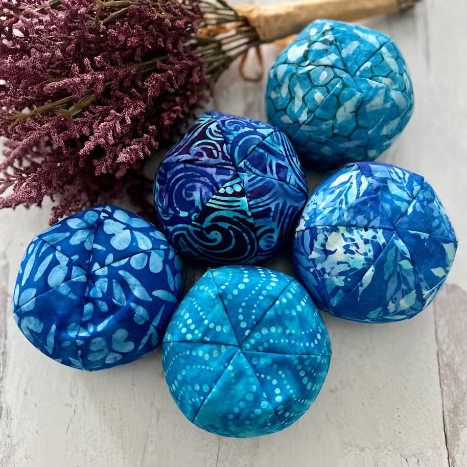 Cotton batik ball filled w/ organic flax seed, herbs & soothing blend of essential oils.