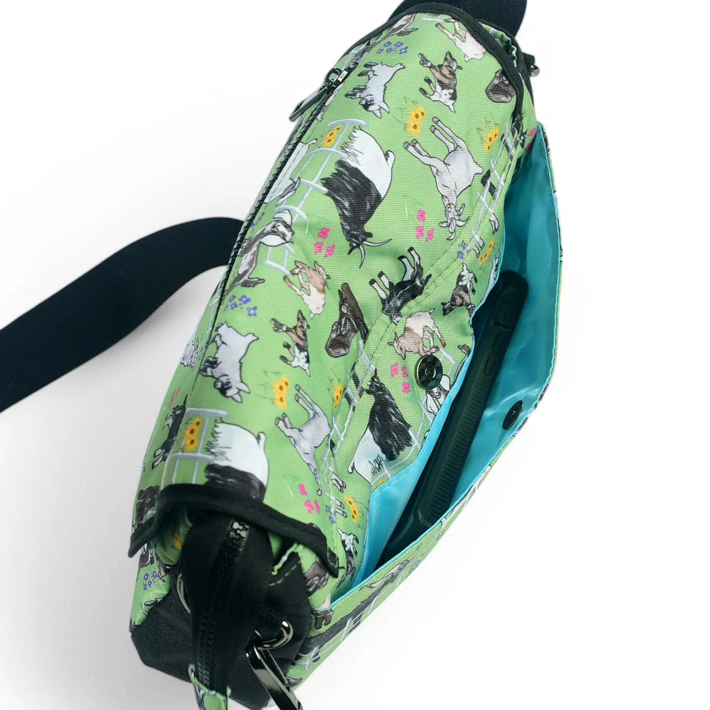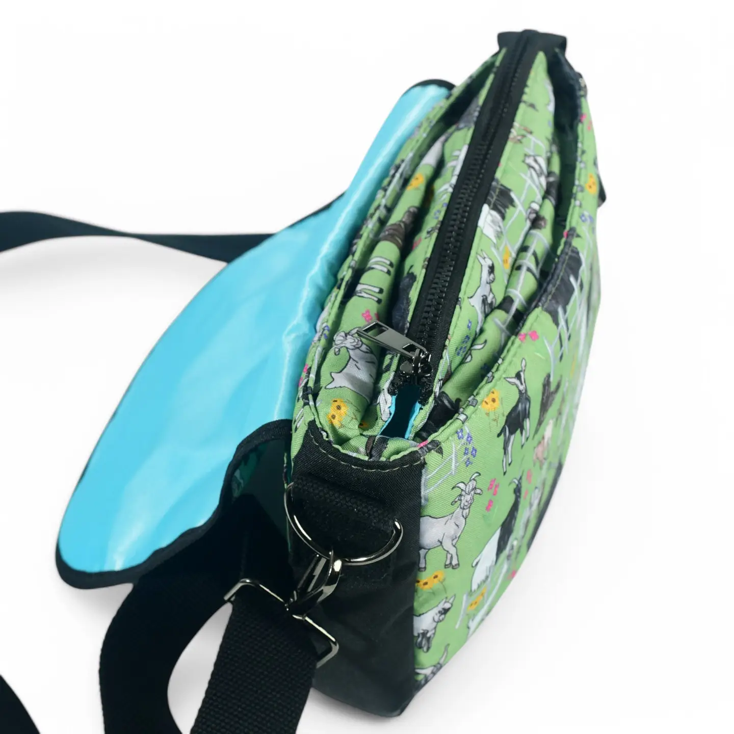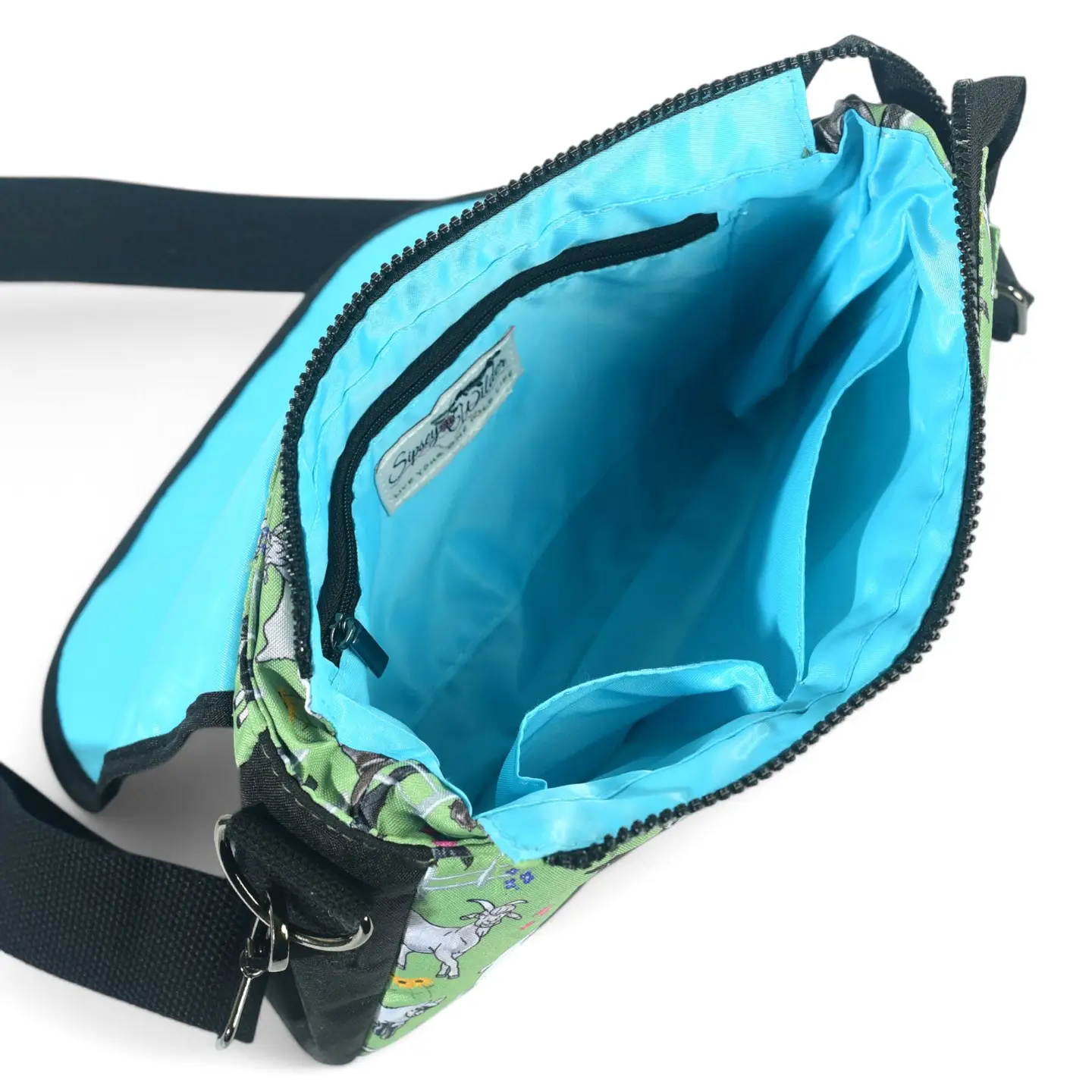 Hit your stride with this "just right" crossbody! It has all of the space and compartments you need to keep things light and organized! The main compartment has a flap with a hidden magnet closure for quick and easy closing. Inside there is an inner zippered compartment as well as 2 open organizational pockets. The front flap has a zippered compartment and the back of the bag has an open, quick phone pocket with a magnet closure.