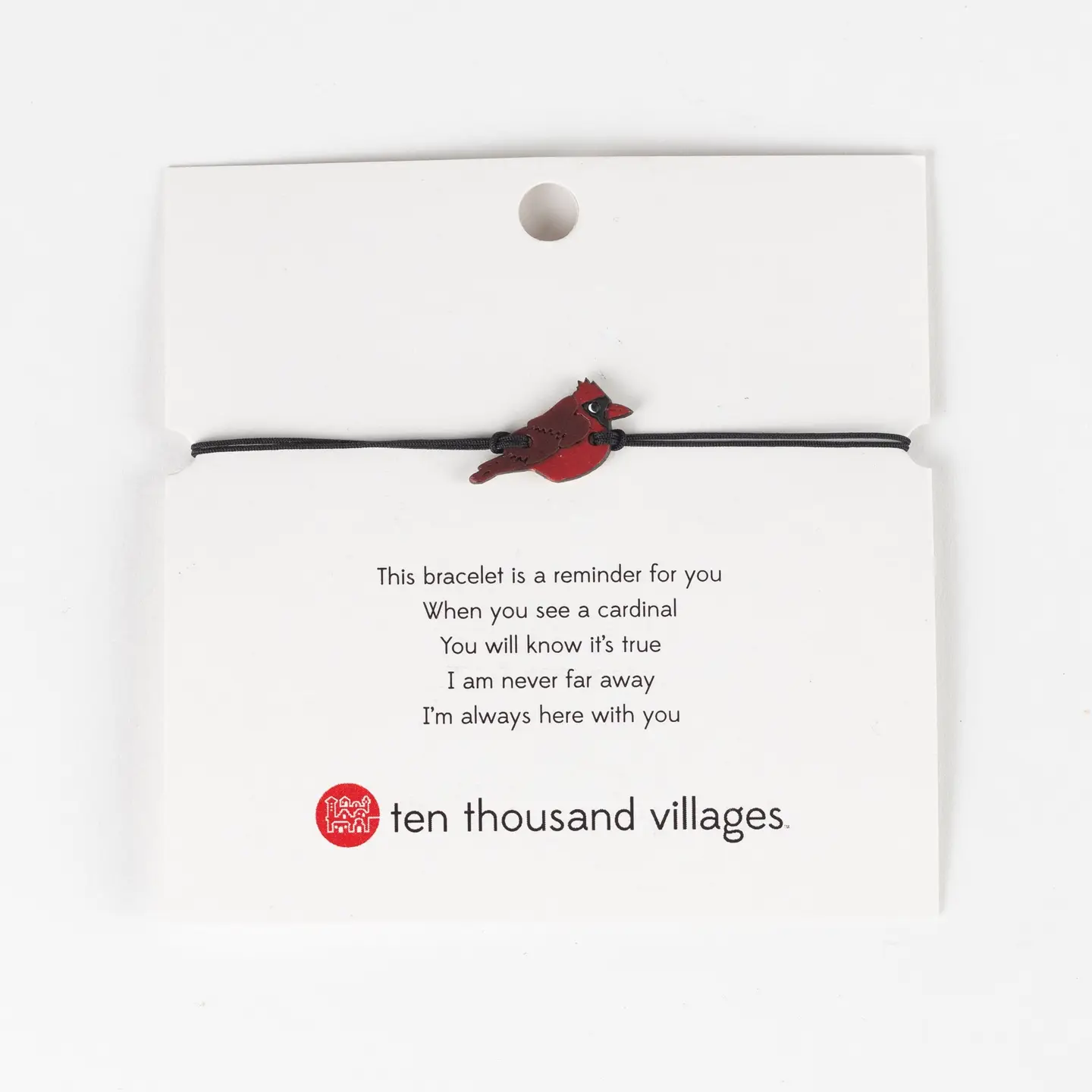 Keep the memory of loved ones close with the Handcarved Cardinal Bracelet. This handcrafted bracelet features a beautiful, hand-carved cardinal made of natural, locally sourced gourd on a sweet card with a heartfelt message of remembrance. Its adjustable knot allows for the perfect fit. Handmade in Colombia, this bracelet is a unique and meaningful accessory that supports local artisans.