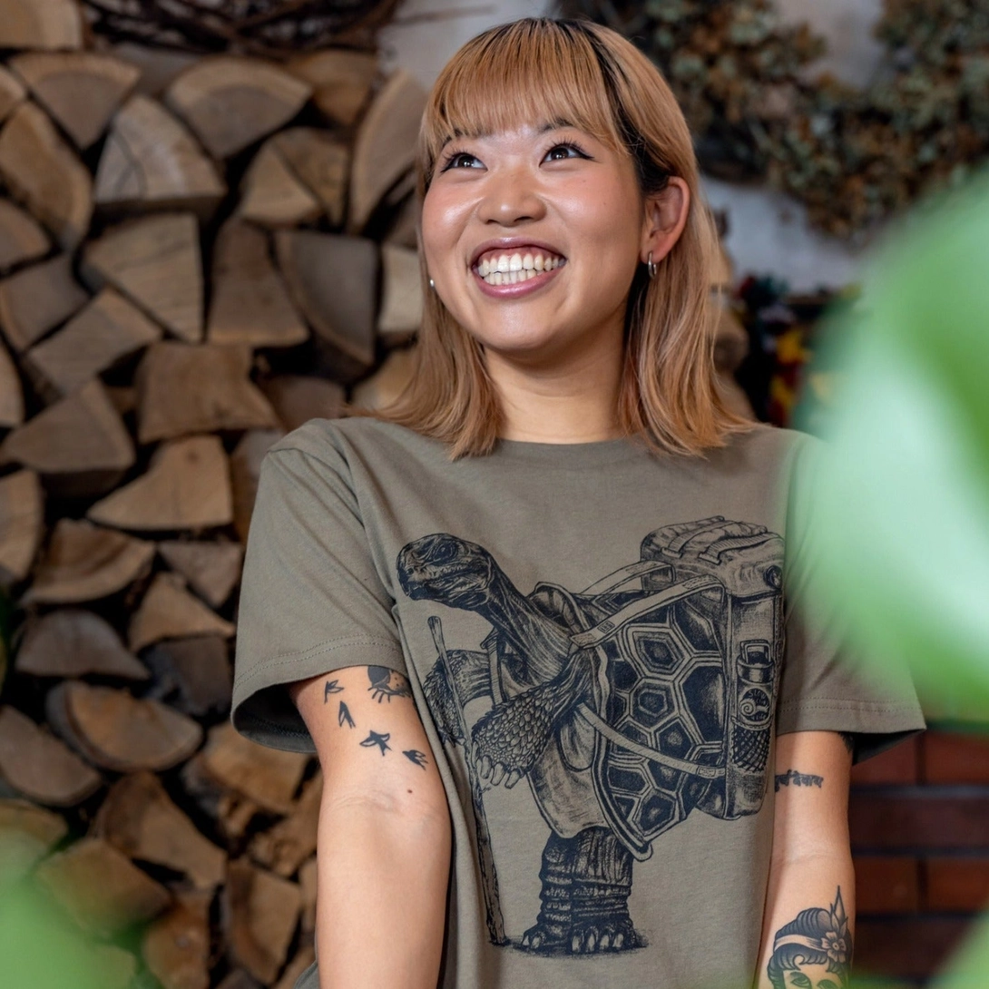 Hiking Tortoise loves vanilla wafers and uncomfortable laughter and is always keeping an eye out for The Snowshoe Hare. With a strong love for buttered toast and blue skies, he always knows when to call it a day and go inside.
