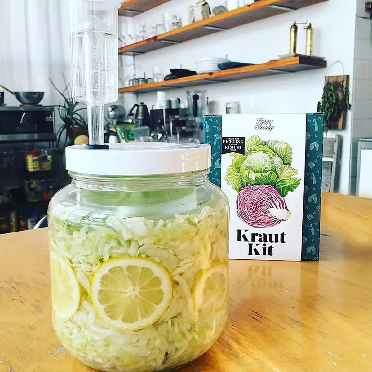 Easy to make & packed with nourishing probiotics, sauerkraut is endlessly customizable & a joy to explore. All the equipment is reusable, so you can experiment with different flavor combinations or try your hand at kimchis & pickles.