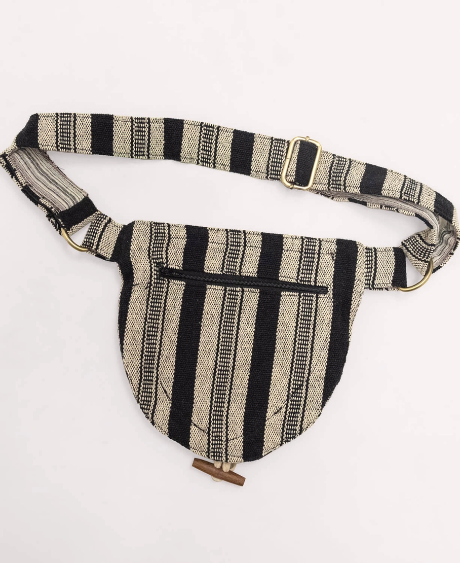 Nurture the soul with one of nature's beauties as you use this Leafy Fern Hip Bag. Allow the simplicity of this fern design to deliver growth, resilience, and hope into the soul. This cotton canvas fanny pack has an adjustable waist strap and two inner zip pockets to keep you hands-free. Includes a striped pattern with a fully lined inside. Hook and loop closure. 7 x 1.5 x 8 inches with a strap that adjusts to fit a 35-49 inch waist. Natural.