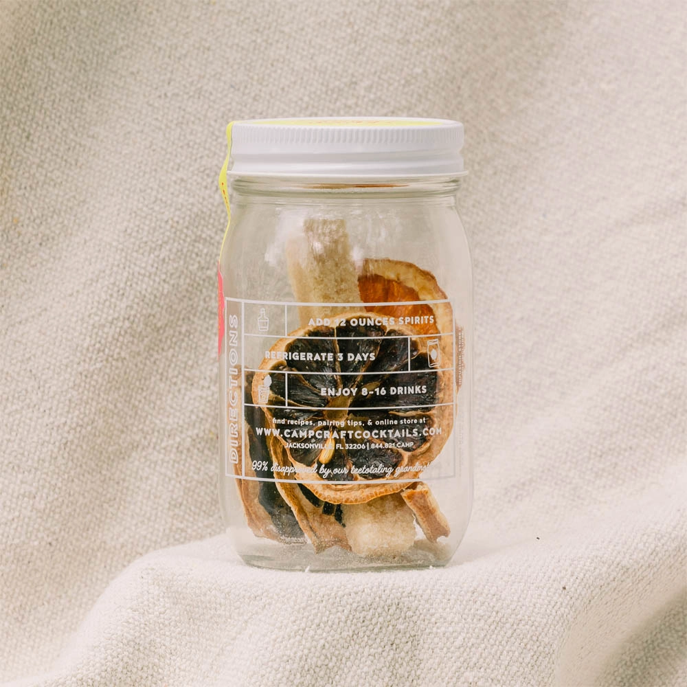 INFUSE WITH: Vodka (or Hot Water for a Zero Proof recipe) Each jar is filled with Dehydrated Fruit and Non-GMO Vegan Sugar. No Preservatives, No Artificial Colors or Flavors. HANDCRAFTED COCKTAILS: Enjoy the perfect Lemon Drop every time with Camp Craft Cocktails’ refined recipe.