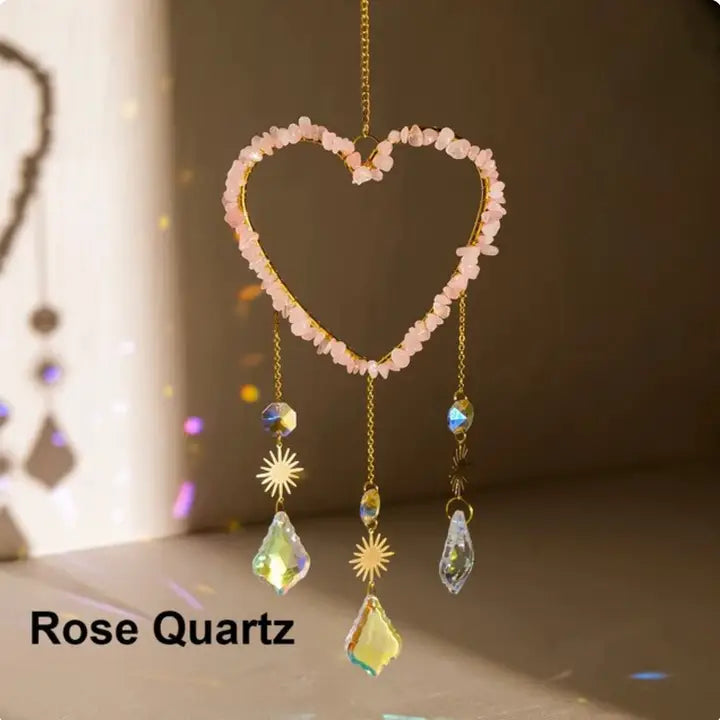 Our Love Crystal Heart Suncatcher Hanging is expertly crafted with natural gemstone, crystal and metal chains, designed with intricate details that enhance its beauty and charm. The high-quality crystals that are chosen for their ability to reflect and refract light, creating a mesmerizing display of colors and patterns.