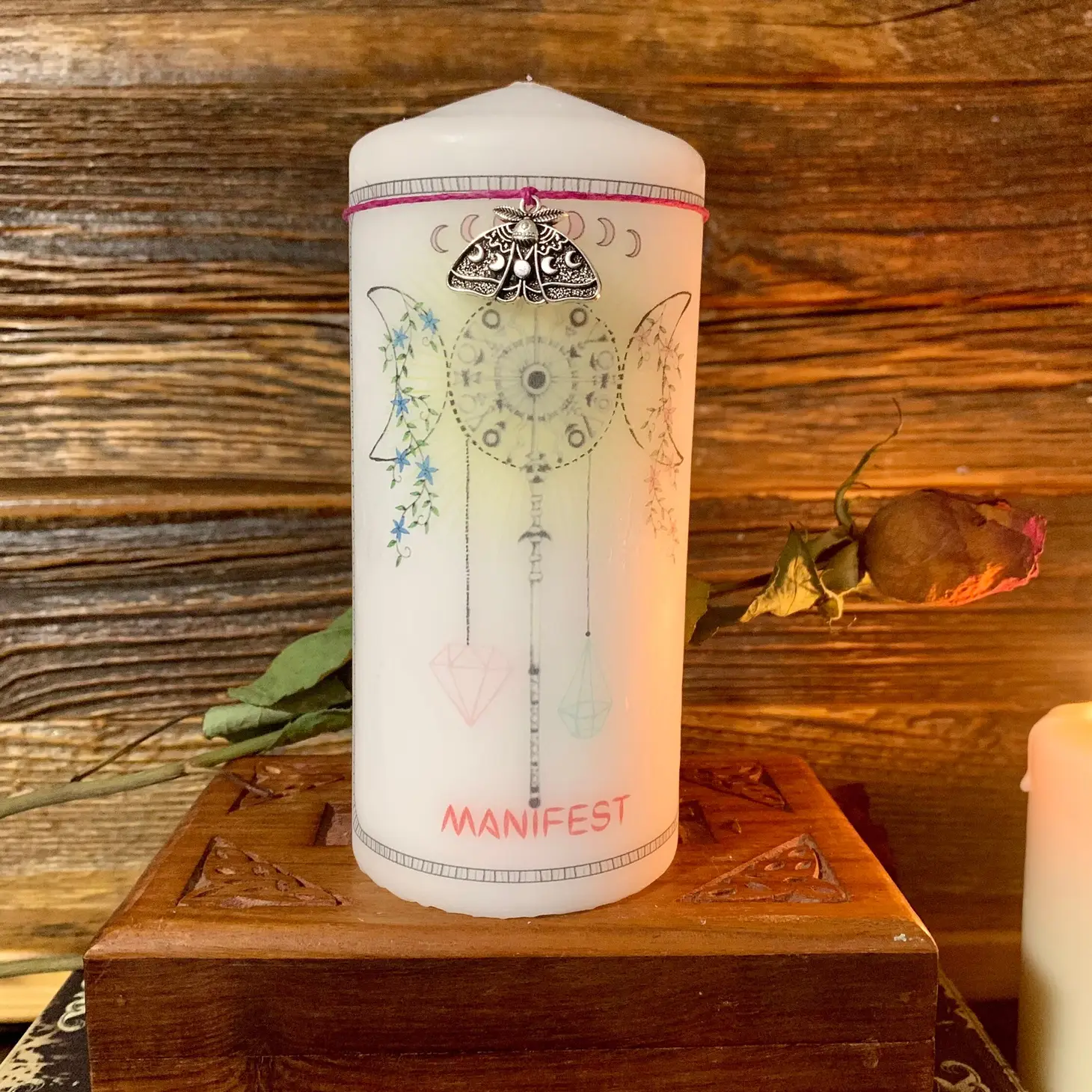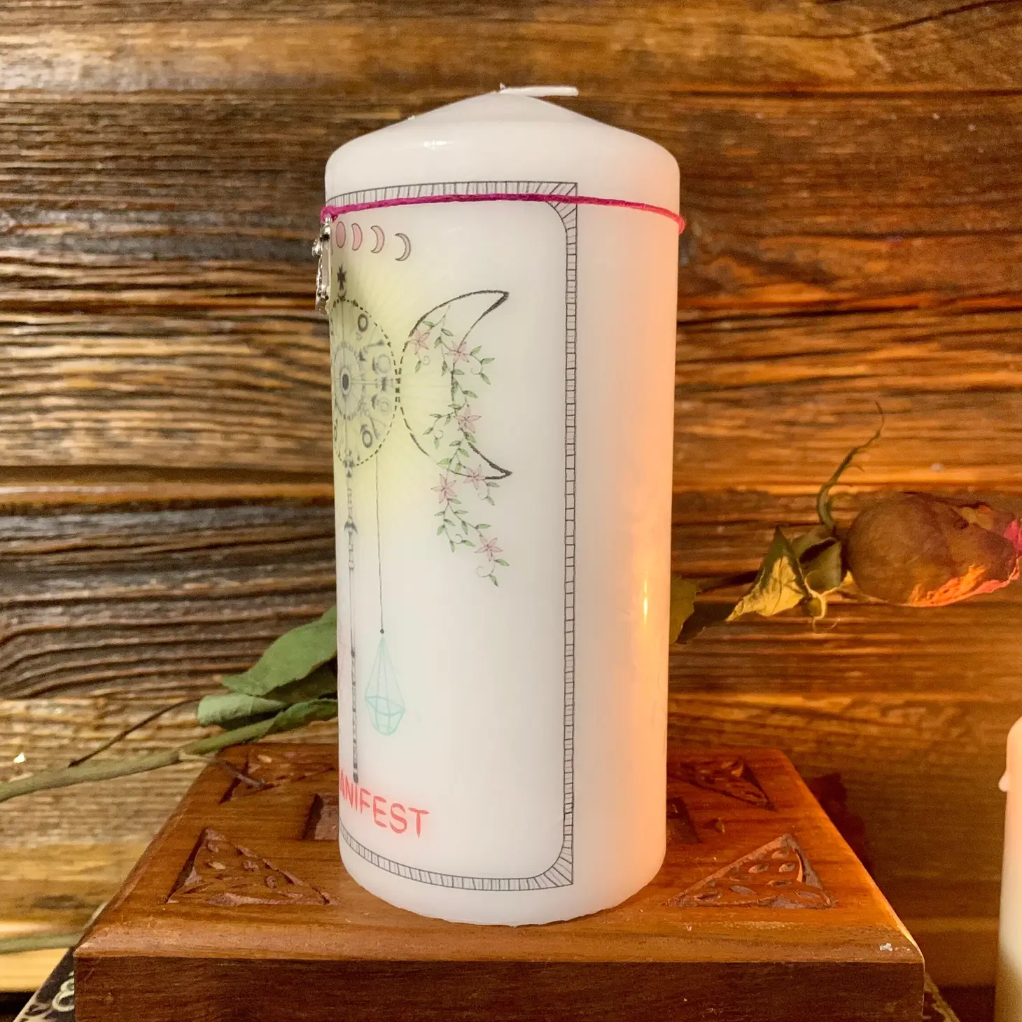 Each candle burns for 60+ hours, and is made with paraffin wax. 3 inches wide 6 inches tall. Candle should not burn for more than 2 hours. Outside wax of the candle may need to be trimmed as the centre of the candle burns down.