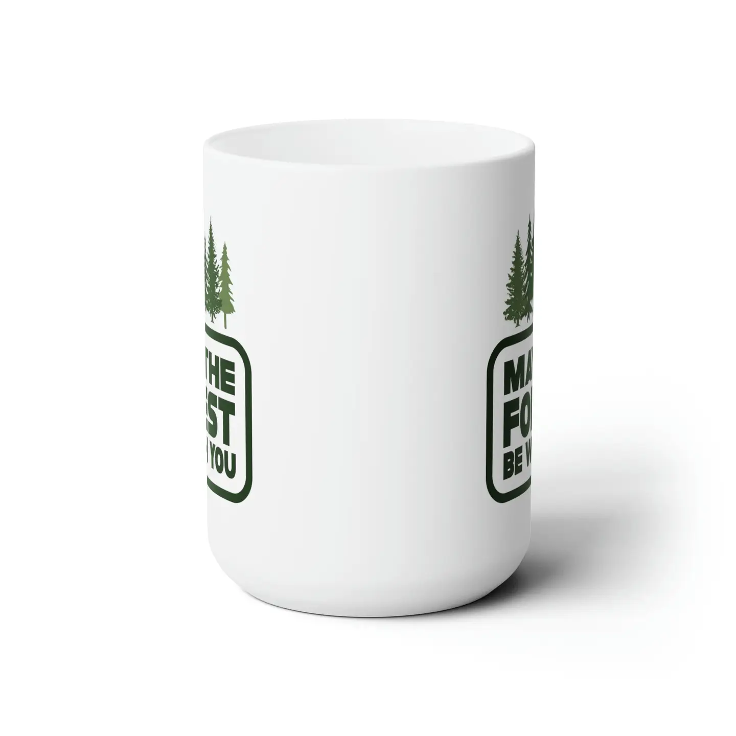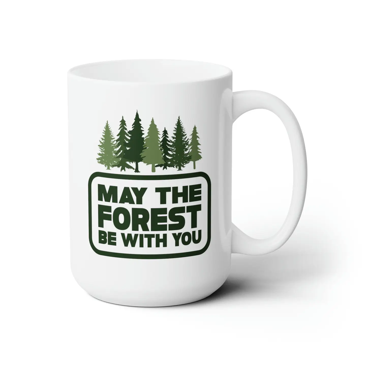 Enjoy your morning coffee with in the May The Forest Be With You 15oz. ceramic mug. A premium hard coat provides crisp and vibrant color designed to last for years. Perfect for all hot & cold beverages.