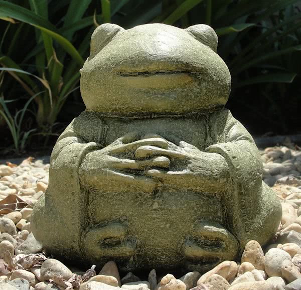 The product tag reads: "Those who connect with this Zen Creation are Sensitive, Adaptable and Faithful in Spirit ... or they just love frogs. Keep this sculpture near as a lasting reminder of all which is good in you. May your life be filled with Prosperity"