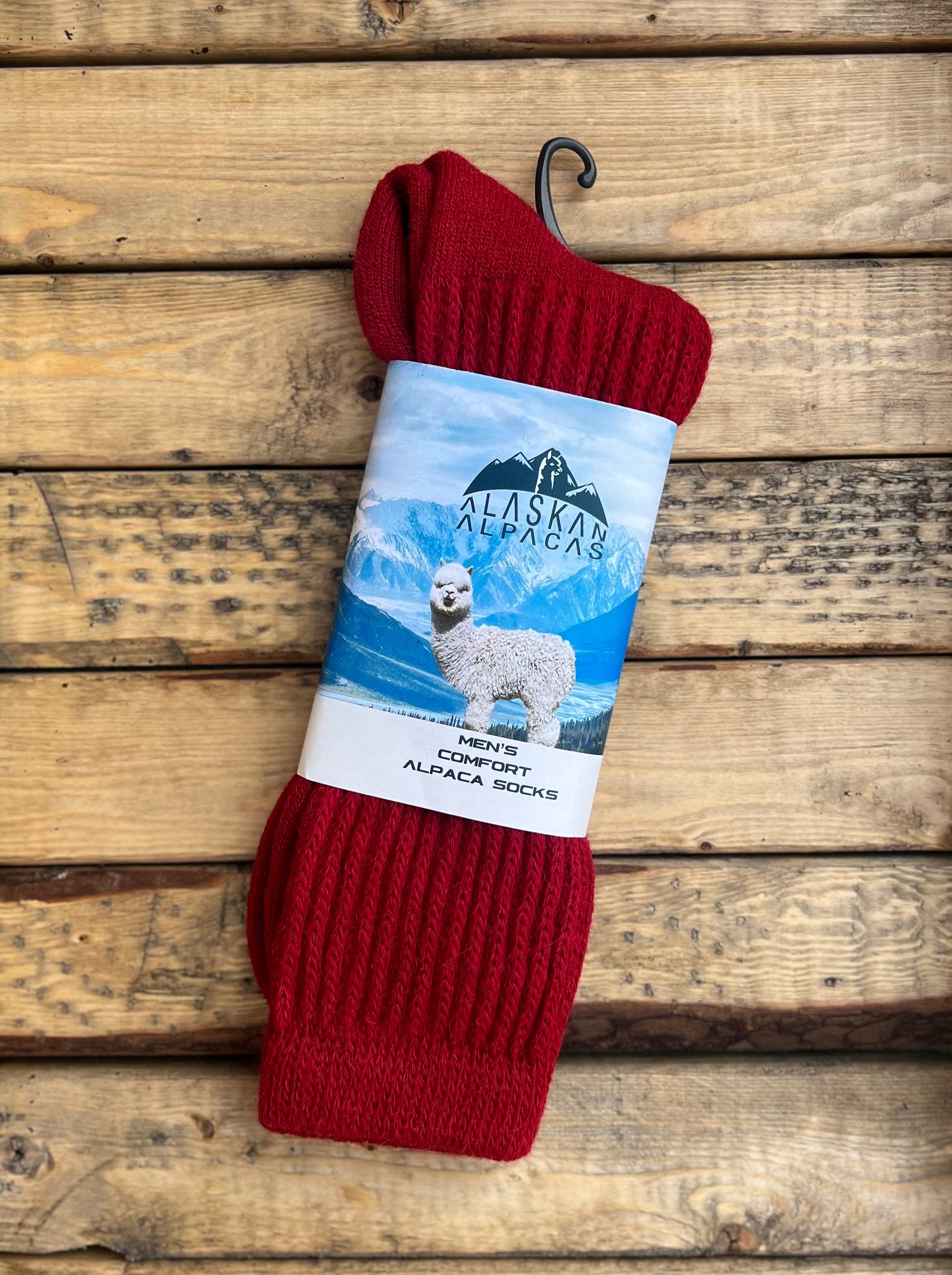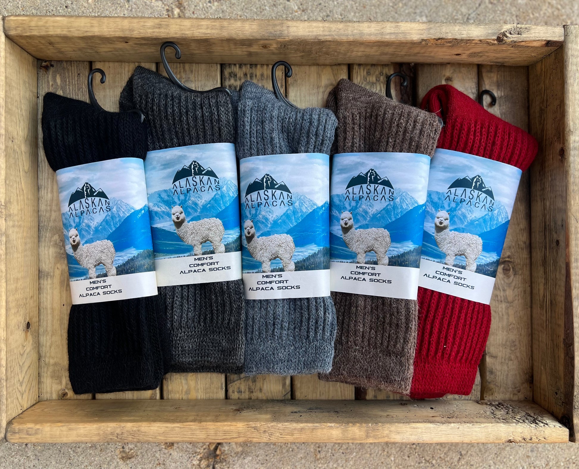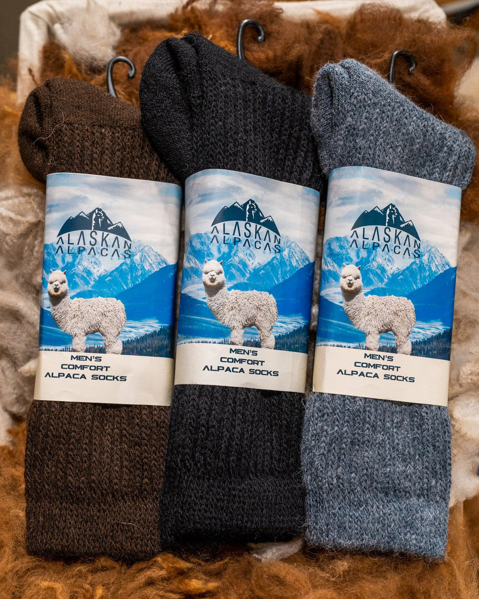 Made to the same quality standards as the Outdoor Socks, but with a looser, non-constrictive fit in the calves. Alaskan Alpacas’ Comfort Socks are ideal for anyone with large calves, diabetes, or sensitivity to pressure on their legs.