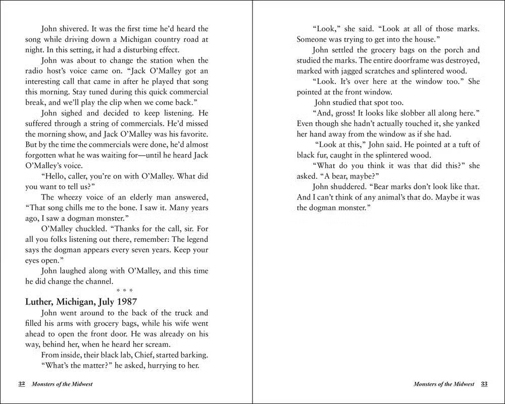 Read 23 chilling stories, from two paranormal investigators, about reportedly true encounters with monsters in the Midwest. This collection of “ghost stories” presents the freakiest, most surprising tales of monsters in the states of Illinois, Indiana, Iowa, Kentucky, Michigan, Minnesota, Missouri, Nebraska, North Dakota, Ohio, South Dakota, and Wisconsin!