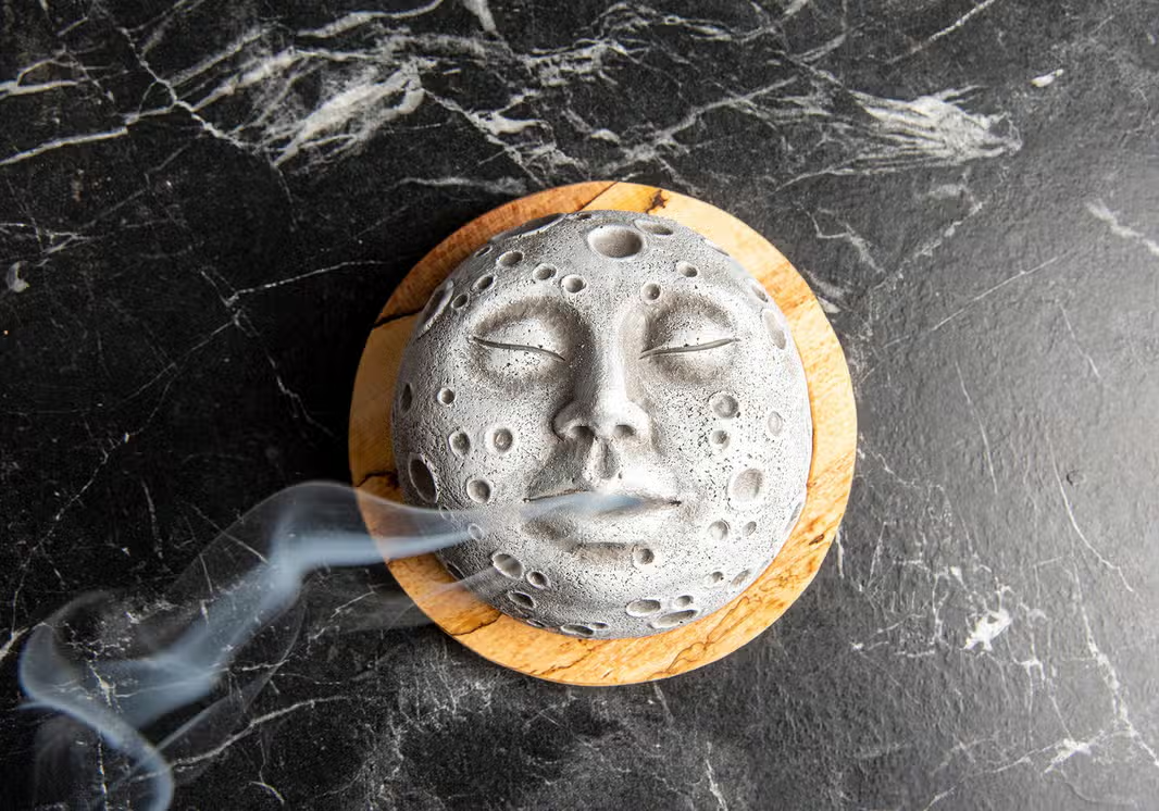 Moon face is a high quality product made from various rare stone powders. Also real raw beech wood is used for the base of the incense holder and the wood is shaped by hand carving. 4 pieces of organic conical incense are sent as a gift. A pebble pedestal is sent to prevent the conical incense from burning the tree. The incense may go out depending on the air flow in the environment, and you can continue to use the extinguished incense by burning it again. There may be minor superficial differences because of the nature of handmade. The light used in the photo shoot can change the color of the product. So the color of the product to be sent may be a little dark or a little light. As natural wood is used, the color and patterns of the tree vary. You can see samples of the bases to be sent in the product gallery. Diameter for moon figure: 10 cm / 4 inch Dimater for wood tray: 12 cm / 4.7 inch