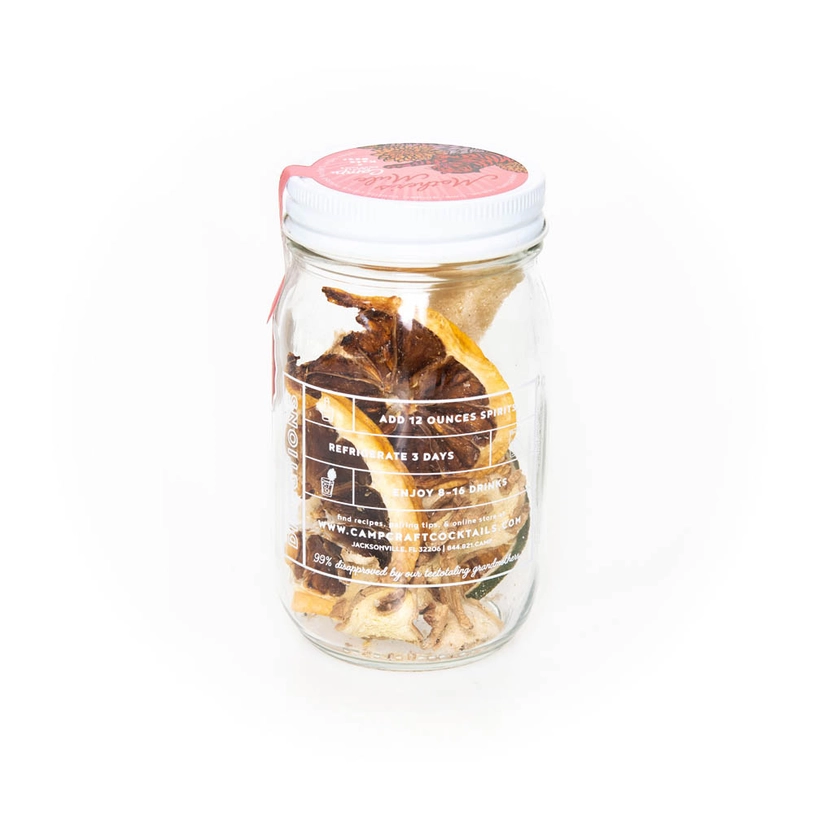 Each jar is filled with Dehydrated Fruit, Herbs and Non-GMO Vegan Sugar. No Preservatives, No Artificial Colors or Flavors.