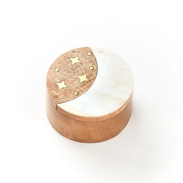 Nakshatra Moon Stars Pivot Box Bone Brass