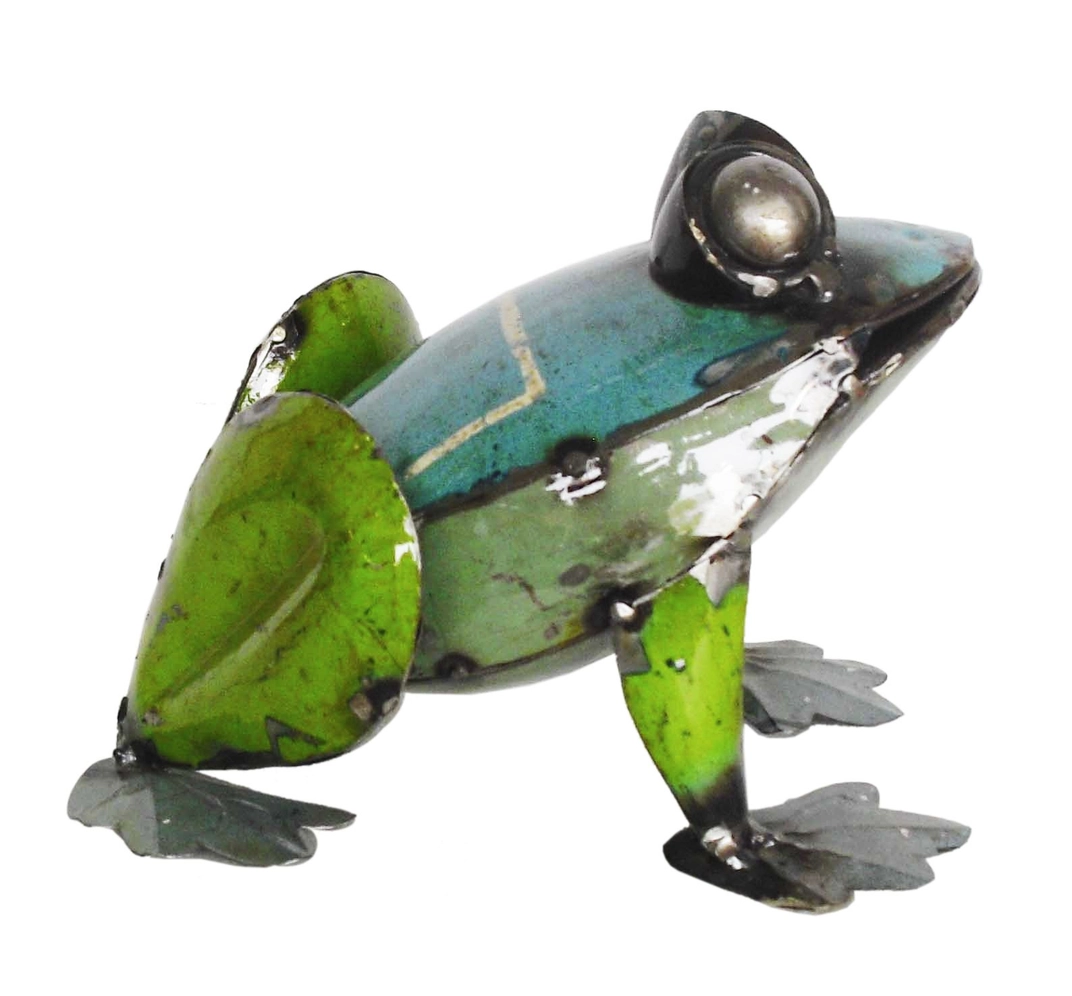 Pad Me Pond Frog is a unique and charming addition to any outdoor space. The sculpture is made from recycled metal, which gives it an eco-friendly and sustainable quality. The design features a playful frog, adding a touch of whimsy to your garden or backyard pond. The craftsmanship of this sculpture is evident in its intricate details and expert metalwork, which create a lifelike and captivating appearance. Measuring approximately 13 inches by 19 inches, this sculpture is the perfect size for display on a patio, deck, or garden bed. Its durable construction ensures it will withstand the elements for years to come.