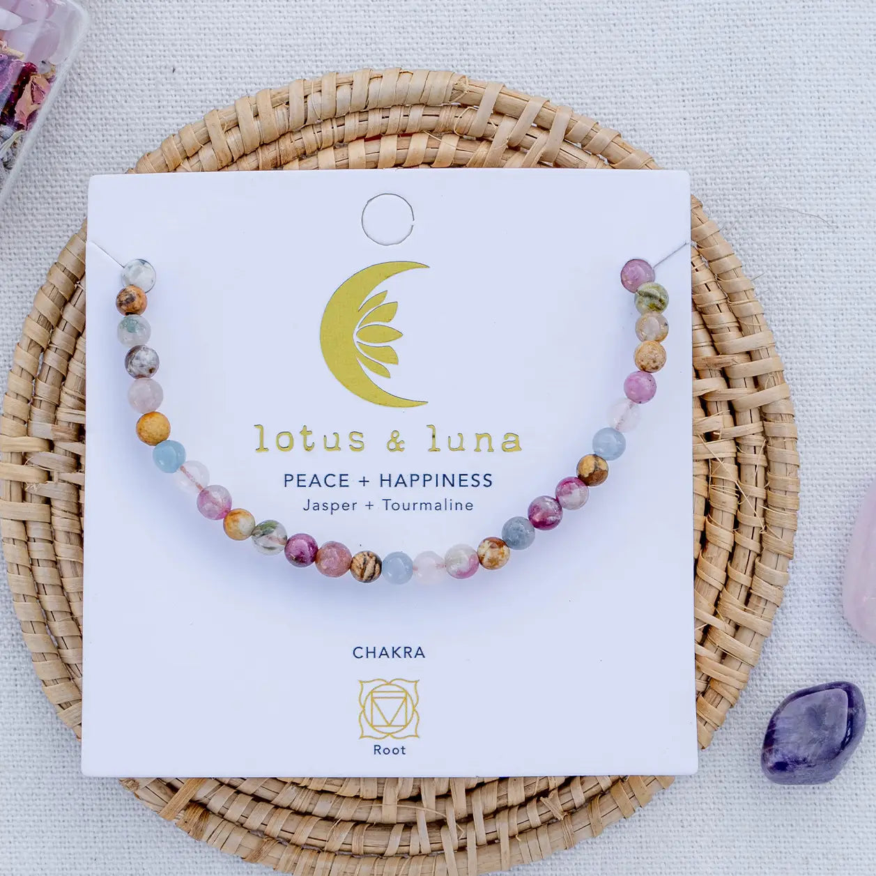 Our necklaces are made with cotton cords, coconut shell clasps, semi-precious stones with healing and positive vibes. Each necklace has 4 different size options to adjust to your perfect fit; snip off any excess cord. This necklace can also be worn as a double wrap bracelet!