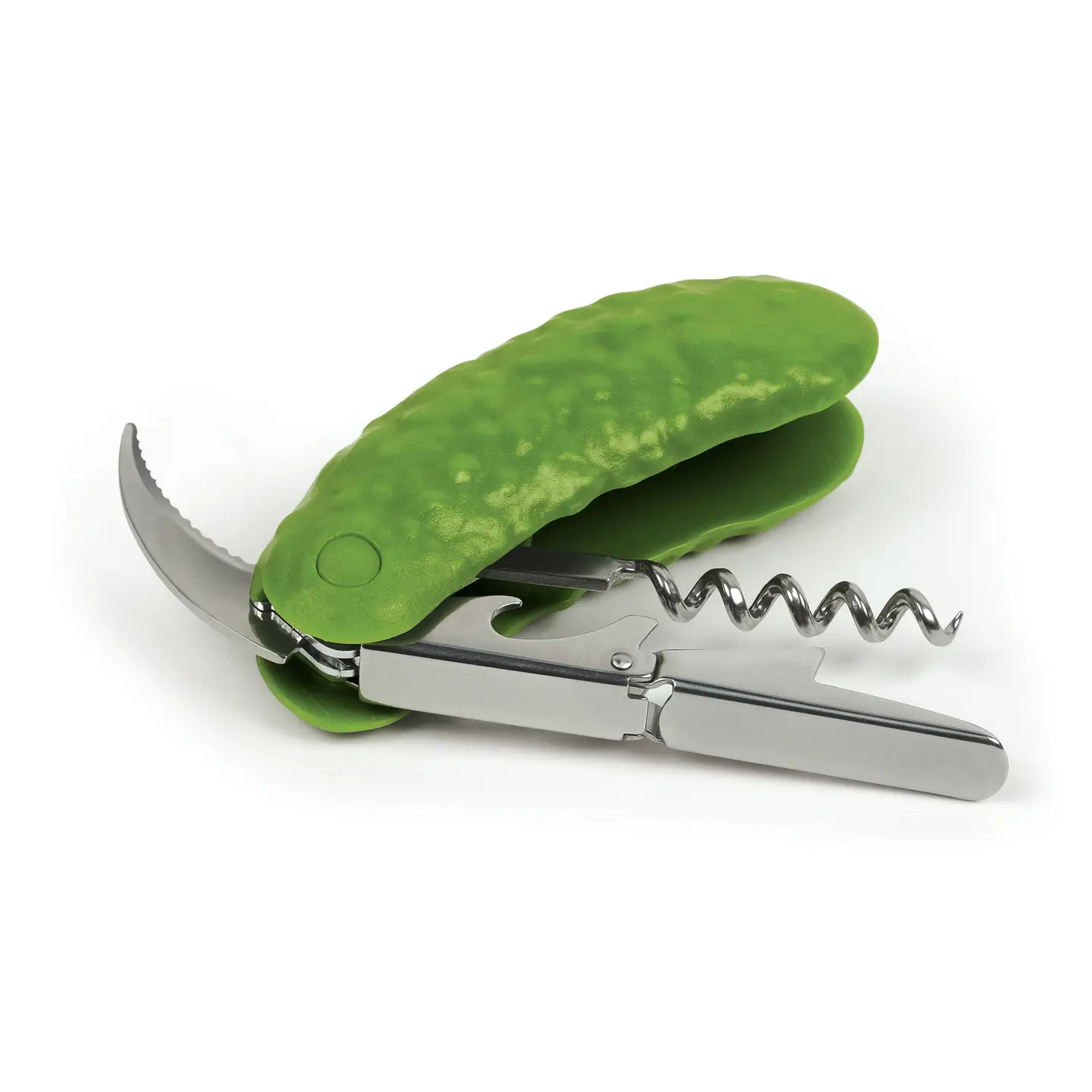 When it’s time to relish a dillightful bottle of wine, reach for Fred’s Pickled corkscrew and everything will be just brine. This quality, multi-functional bar tool includes a foil cutter and double-hinged lever corkscrew.