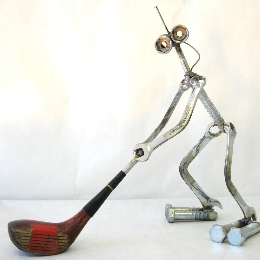 Robot made from scrap and seconds wrenches, sockets, bolts and assorted hardware.