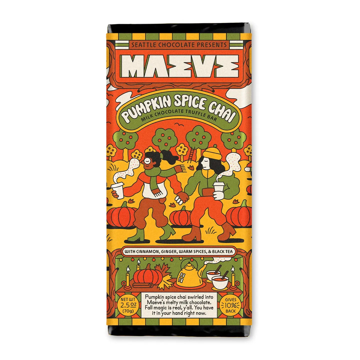 This isn’t just pumpkin spice chocolate, it’s your unofficial invitation to overcommit to fall. We’re talking a chai milk chocolate truffle bar infused with classic pumpkin pie spices, ideal for sipping coffee at town meetings, dodging hayride proposals, or emotionally preparing for your third apple-picking date of the week. Back by popular demand (and town council decree), this fall chocolate bar is peak seasonal serotonin. (2.5oz)