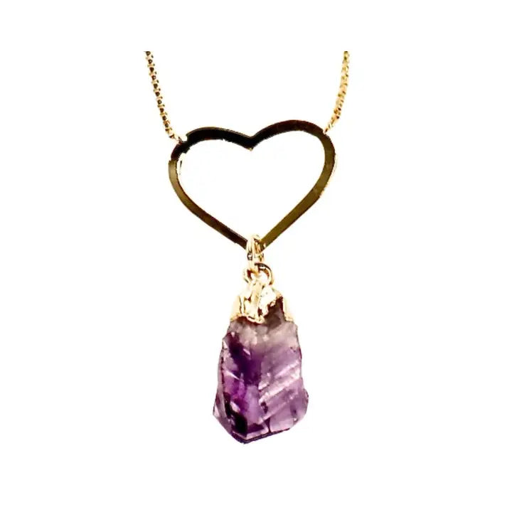 Experience the tranquility of our Raw Amethyst Heart Necklace.