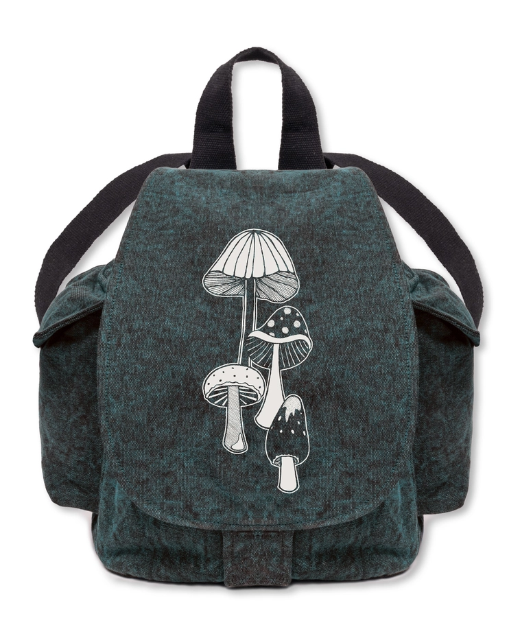 Grow with the Flow every time you use this Retro Mushrooms Slouch Backpack! A canvas bag featuring a hand printed groovy mushrooms print on uniquely dyed fabric. Place your water bottle, snacks, and electronics in its hook and loop flap side pockets or main pouch as you venture to your cherished places. Secures with a cinch tie and hook and flap closure. Fully lined inside. 12 x 14 x 4.25 inches with 19-35 inch adjustable straps. Flap: 15 x 9 inches. Ocean Blue.