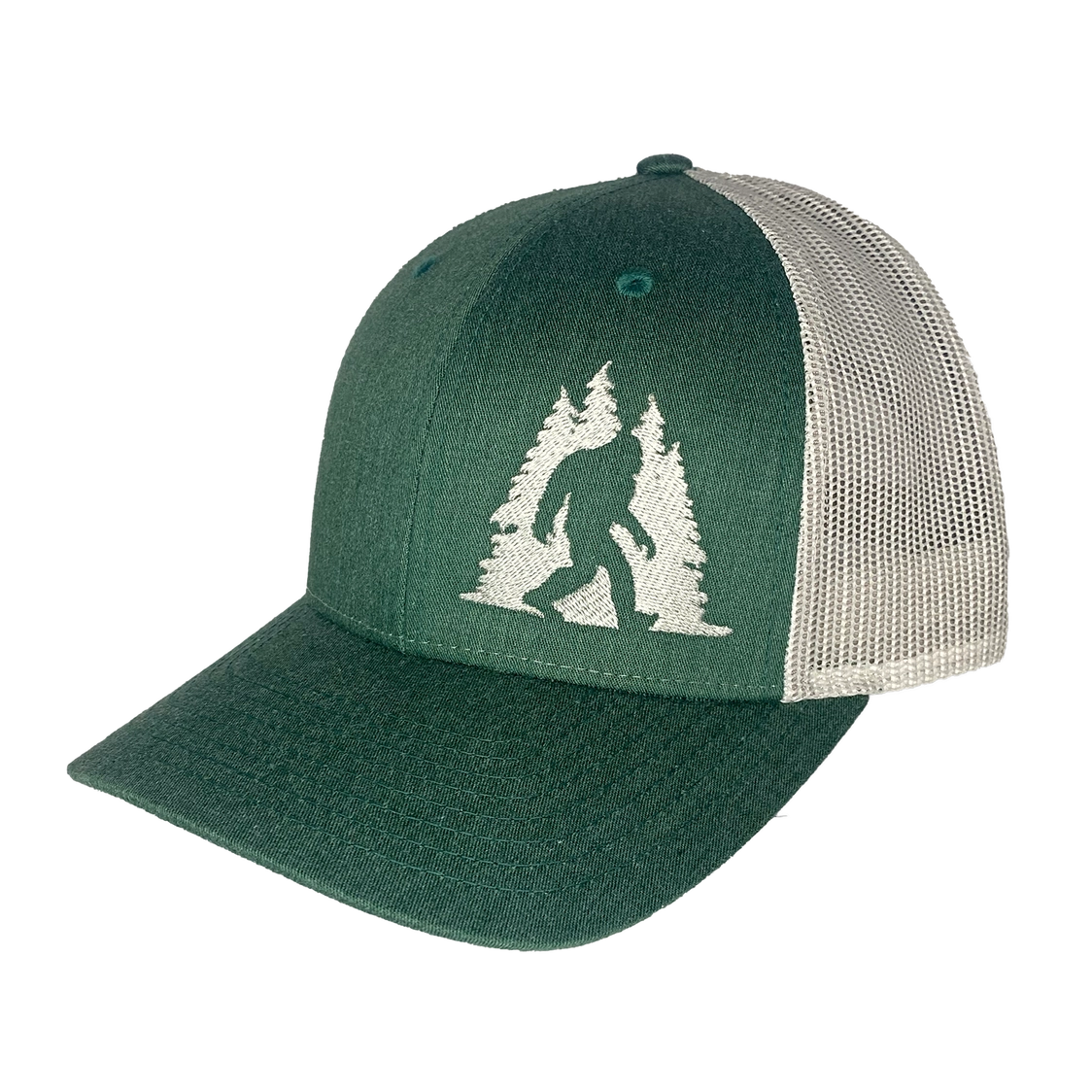 Sasquatch in Trees Trucker Hat - Green/Silver
