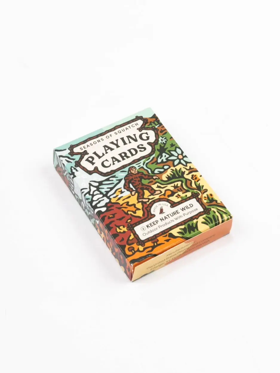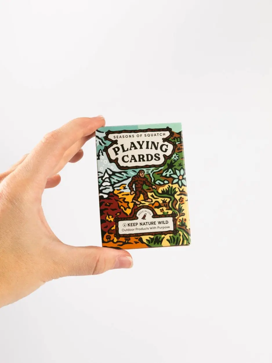 Features stunning illustrations of Sasquatch engaged in various activities, capturing the spirit of each season. From springtime hikes to summer slumbers, and fall campfire to winter cozies these cards celebrate the beauty and wonder of nature with every shuffle.