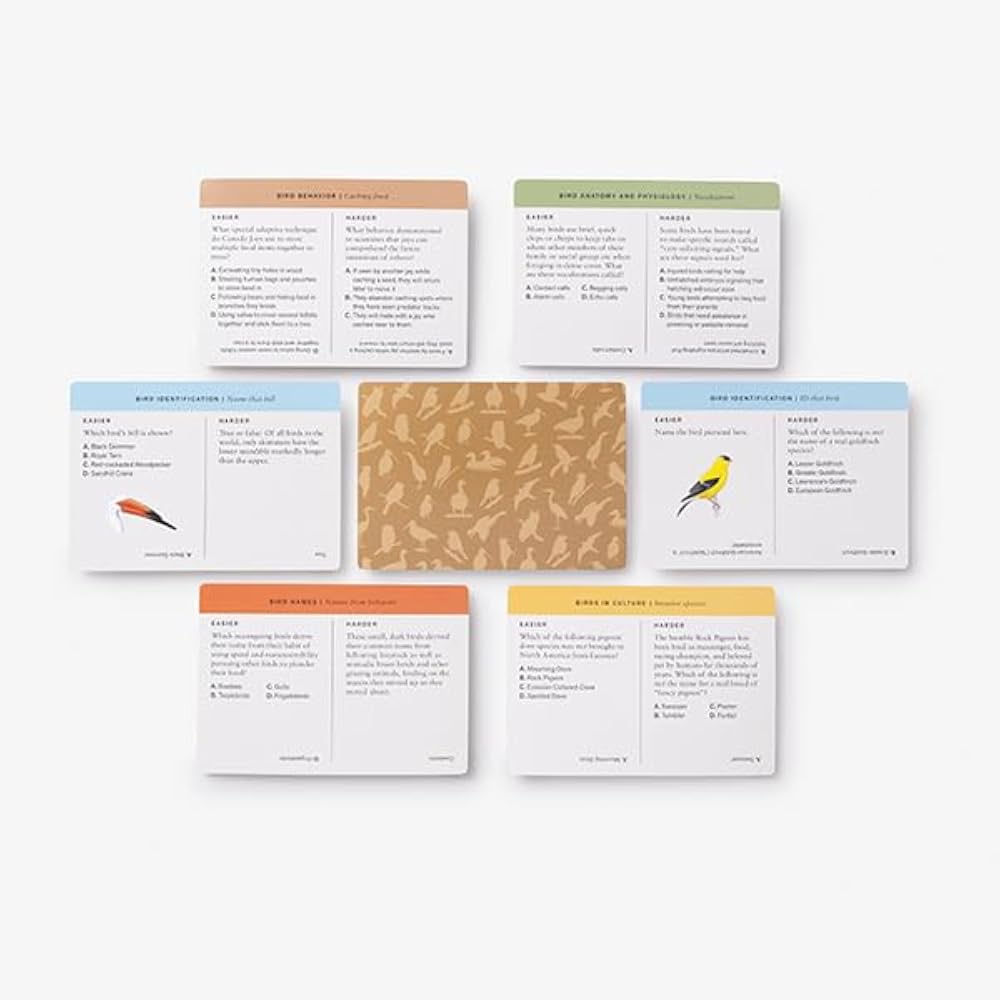 If you answered “true,” you just won a point playing this ultimate ornithology trivia game. Sibley Birder’s Trivia offers 400 questions that will test your bird knowledge over five rich categories: Bird Identification, Bird Anatomy and Physiology, Bird Names, Bird Behavior, and Birds in Culture. The types of question vary: Q&A, true or false, and multiple choice. Each card offers two questions in a category, one easier and one harder. Players can choose which one they want to answer; the easy question is worth one point, while the hard one is worth two. If you answer the easier one correctly, you can move on to the harder one.