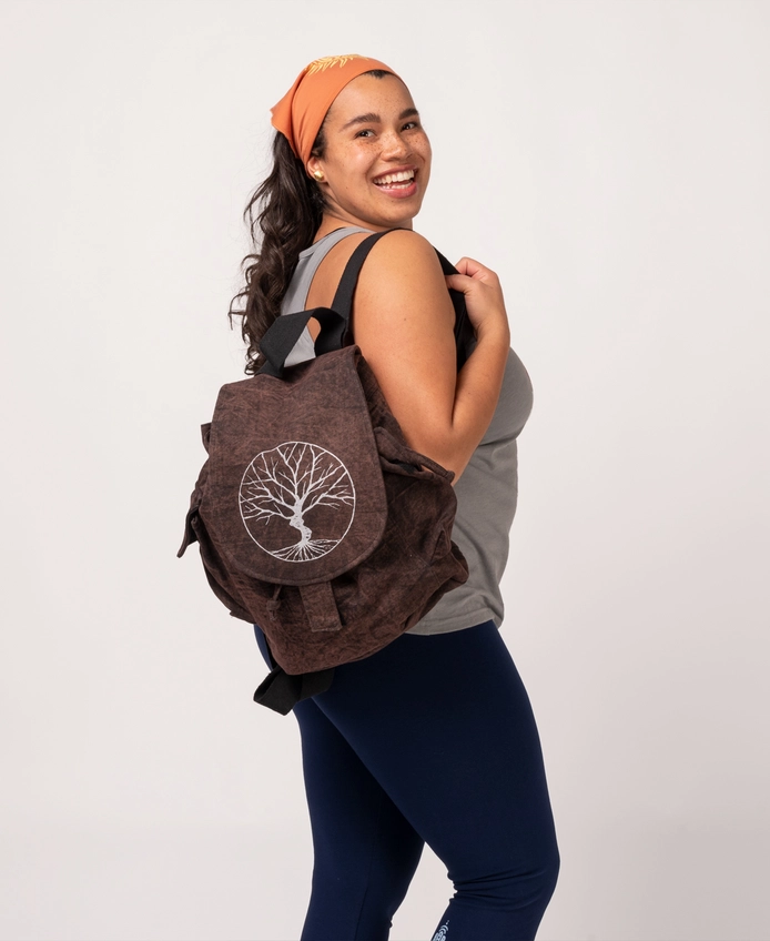 This Peace Tree Slouchy Backpack will keep you connected to all of nature’s beauties. Wear it on your travels to the farmer’s market, eco-friendly shops, or your favorite nature spots. Features a sacred tree symbol hand screen-printed on a heavy cotton canvas bag.