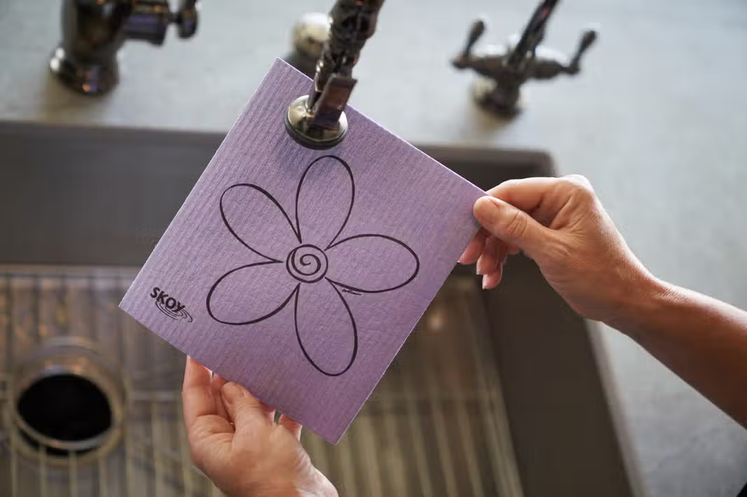 The Skoy Cloth is an innovative cloth that comes in an array of colors and designs and takes the place of your paper towels, sponges, rags, dishcloths and more. It is a European made product and 100% biodegradable when properly composted.