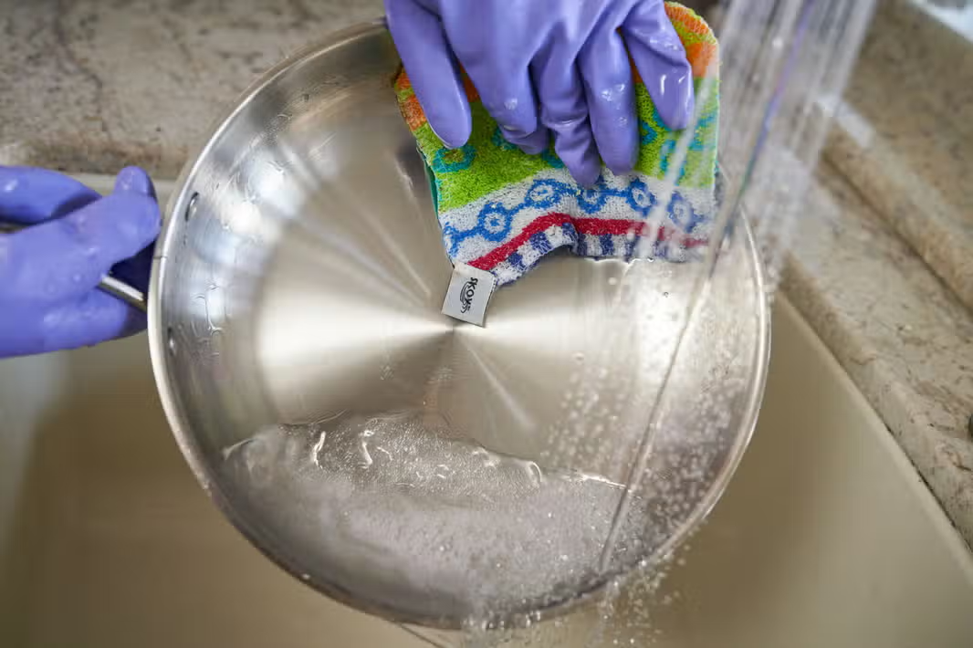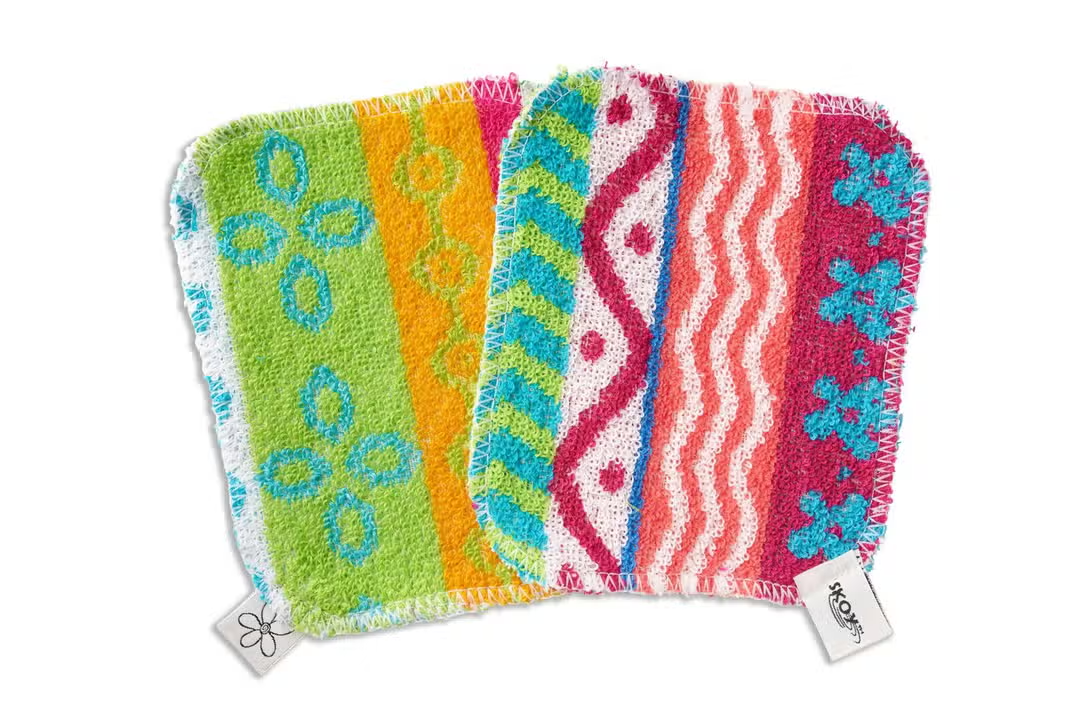 The Skoy Scrub is a new concept in kitchen scouring pads. This reusable scrub made in Europe from cotton and non-toxic hardener outlasts traditional scrubbers and in turn saves and controls waste. The Skoy Scrub comes in a variety of colors and designs which as fun as well as function to any kitchen. These scrubs will replace the old green scouring pads or scrub sponges. The Skoy Scrub is not limited to the kitchen and works well on most surfaces. The scrubber is easily cleaned on the top rack of the dishwasher. 2-pack, 5”x 6” color - assorted designs.